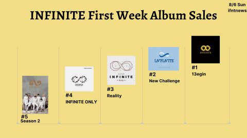인피니트도 인스피릿도 아직 안 죽었다… 이번에 성규 사비 들여서 음반 내고 컴백했다는데 여기에 보답이라도 하는듯 초동 커하 달성이라니 폼 미쳤다 심지어 인피니트 역대 초동 2위 맨인럽이랑 꽤 차이남