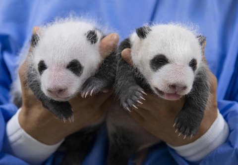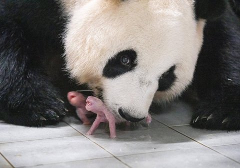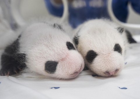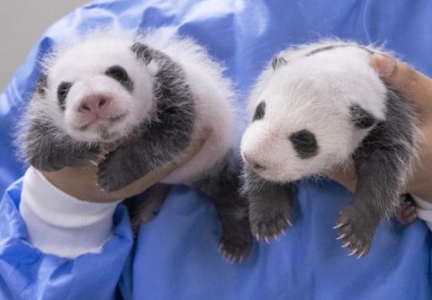 지난달 초 180g, 140g으로 태어난 국내 첫 쌍둥이 판다의 생후 한 달째 현재 몸무게는 1.1kg, 1.2kg으로 출생 당시보다 각각 6배, 8배 이상 증가하며 건강하게 성장하고 있대.