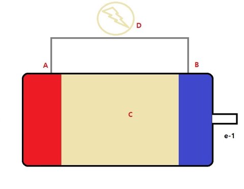 배터리가 전기를 소비하기 시작하면 음극재의 전자가 전선을 타고 양극재로 가고,