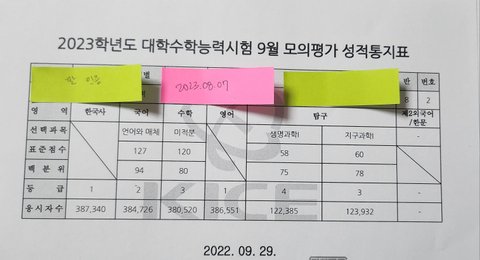 수학 빼고 다 한 등급씩 올랐다!! 생1은 올랐다고 하기 뭐하지만...
