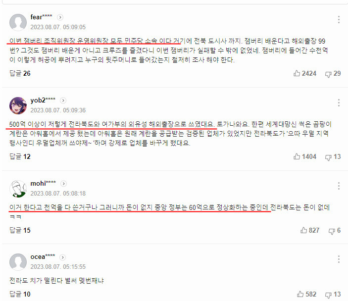 이러니 전북이 전국 재정자립도 꼴찌지 지들끼리 세금 해 처먹으니까