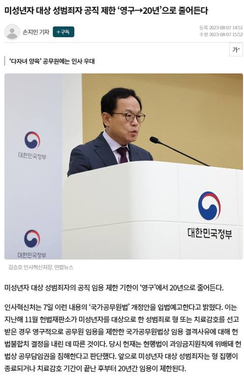 이제 아동성범죄자도 공무원 할 수 있어~