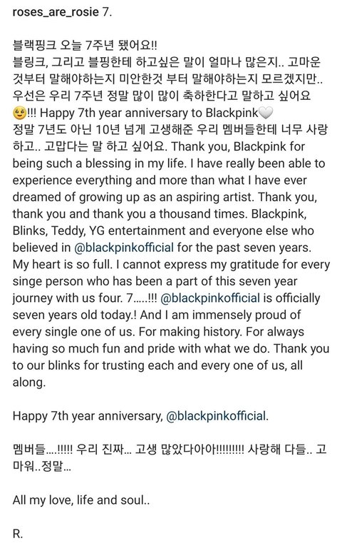 그리고 로제가 올린 글