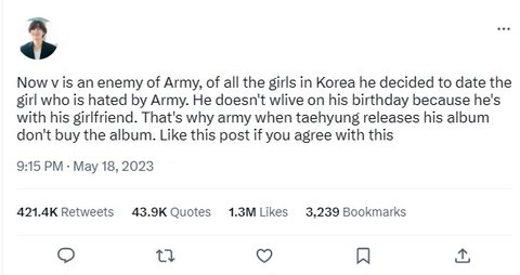 태형 앨범 사지 말라는 트윗 좋아요 100만 돌파