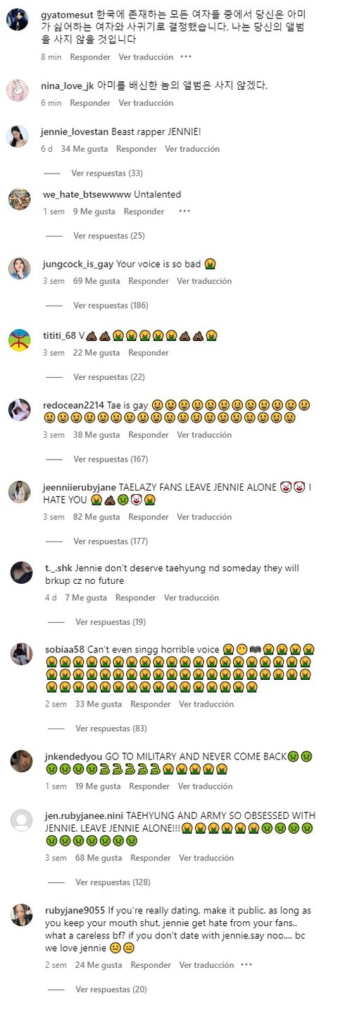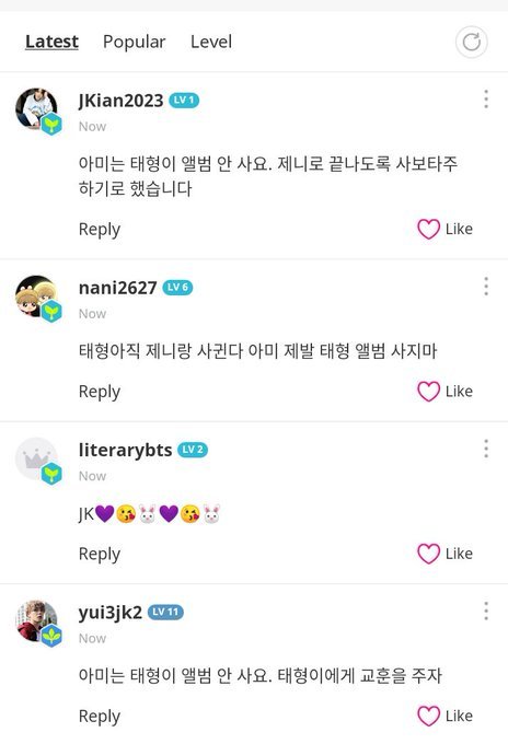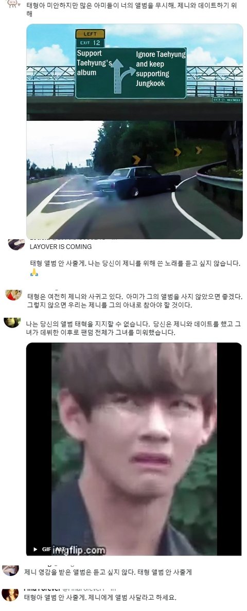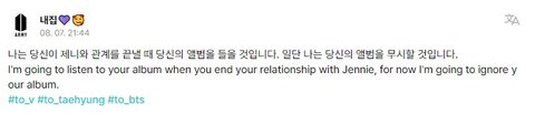 아미에게 질문: 아미는 태형의 앨범을 지원할 예정인가요? 태형이 제니랑 사귀는데도?