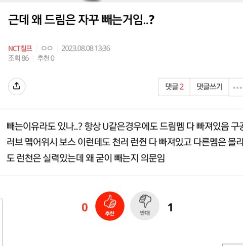 메인유닛 멤버 다섯중 넷이 일리칠ㅋ 마크빼도 셋이라 절반이상^^ 드림 무능력한거 슴이 모르겠냐고ㅋㅋ 핵심만 소수로 뽑으니까 싹 다 빠진것만 봐도ㅎㅎ
