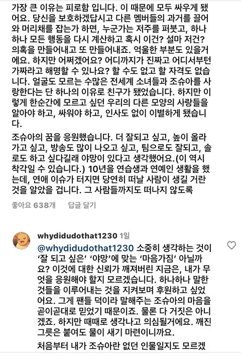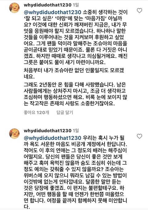 어제까지 최애였기에 나도 이런 글 쓰는 게 마음 아프다