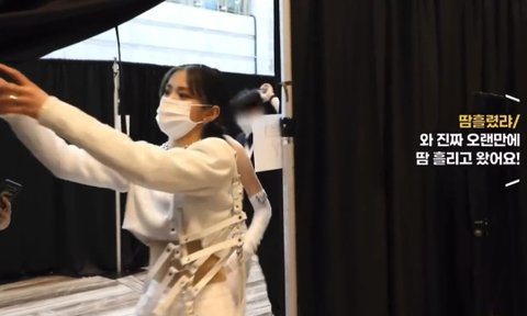 무대가 젖어있어서 휴지 받아서 본인이 닦는 거