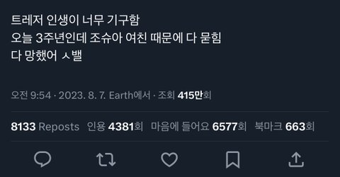 아니 그저께 짹에 트레저 팬ㅋㅋ