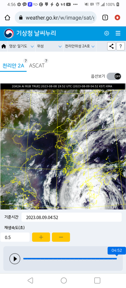 태풍 카눈 현재 모습 눈이 또렸히 보임.우리나라에 다가서