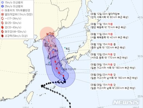 수요일 밤 제주 진입후 10일 오전 내륙 상륙후 관통 예정