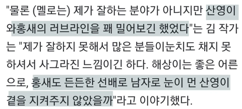 게다가 스브스에서 홍새산영 서사 편집 영상도 올려줬다고