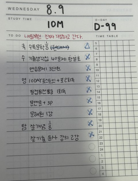 내일부터는 이제 진짜로 미룰 수가 없음 왜냐면 내가 계획한 것들을 최대치로 미뤘을 때가 오늘이 마지막이거든