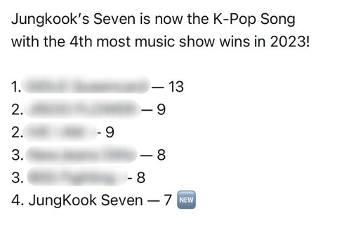 올해 음방에서 가장 많이 1위한 노래 세븐 8번으로 공동 3위로 올라감 음중 인가 가능성 있으니까 둘 다 1위해서 2위로 올려주자 그니까 투표 개중요⭐️