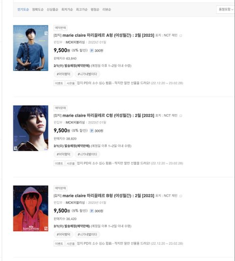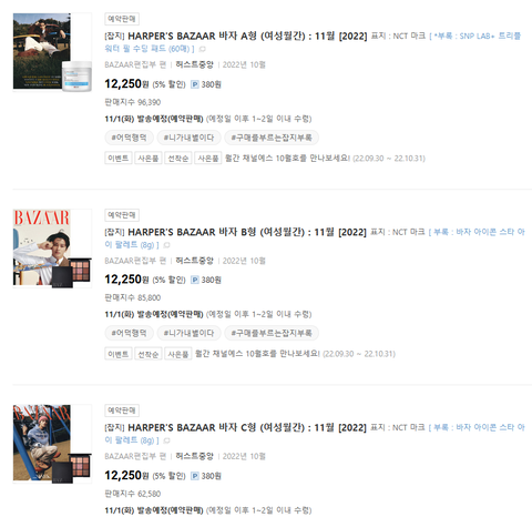 굿즈 여러개 이외에도 마크/재민 상위권