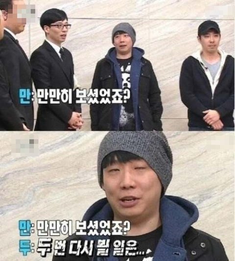 뒤에서 듣고 있던 웃음사냥꾼(x) -> 웃음사망꾼(o) 얼굴 보자마자 울컥해서 웃음관짝 열고 나와버림