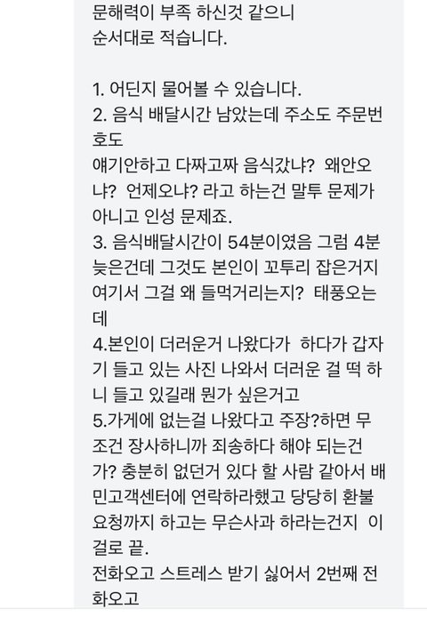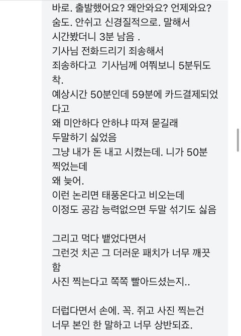 음식 늦은거 사과해달라한적도 비오니 늦을수 있죠 요점은