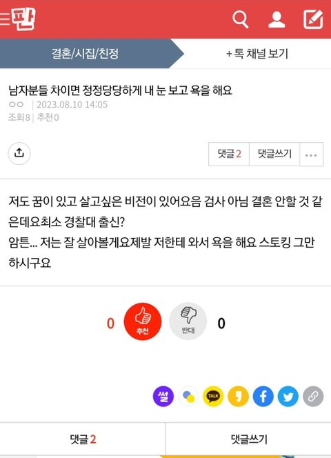 저 검사랑 결혼할거 아니면 최소 경찰대랑 결혼한다는 저 정신병자 같은 경찰 엄청 좋아하는 사람