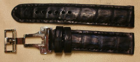 네이비 컬러 악어 가죽으로 제작한 핸드메이드 리얼 악어 가죽 시계줄입니다.(마디샤가죽공예)