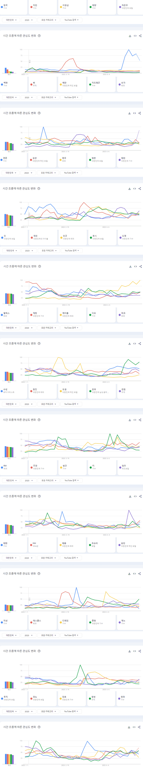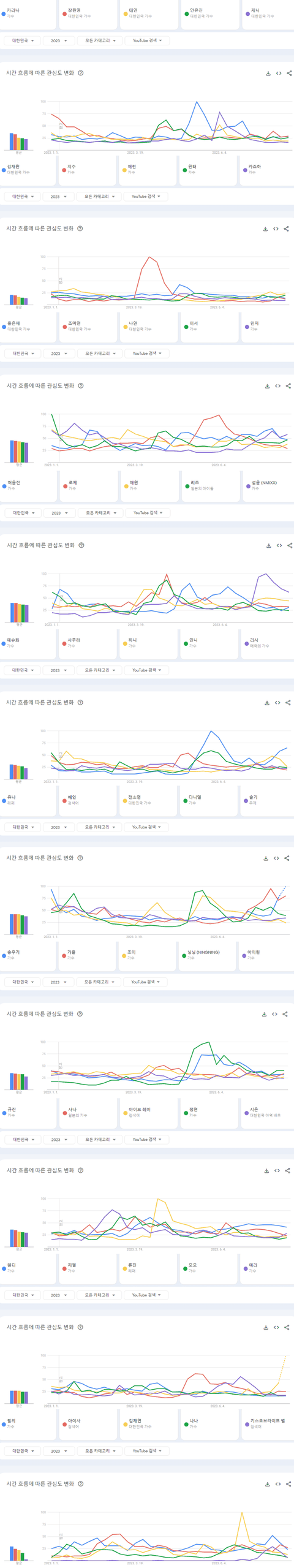 2023년 현재까지 한국 유튜브에서 가장 많이 검색된 남자 아이돌그룹 멤버 TOP50