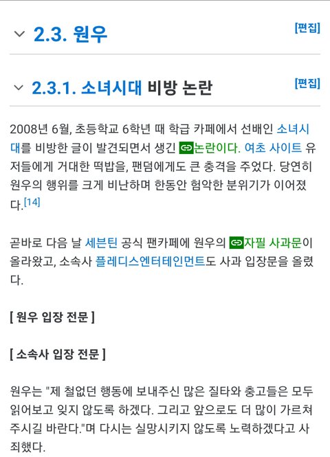 소녀시대 욕했던 애가 원우였구나