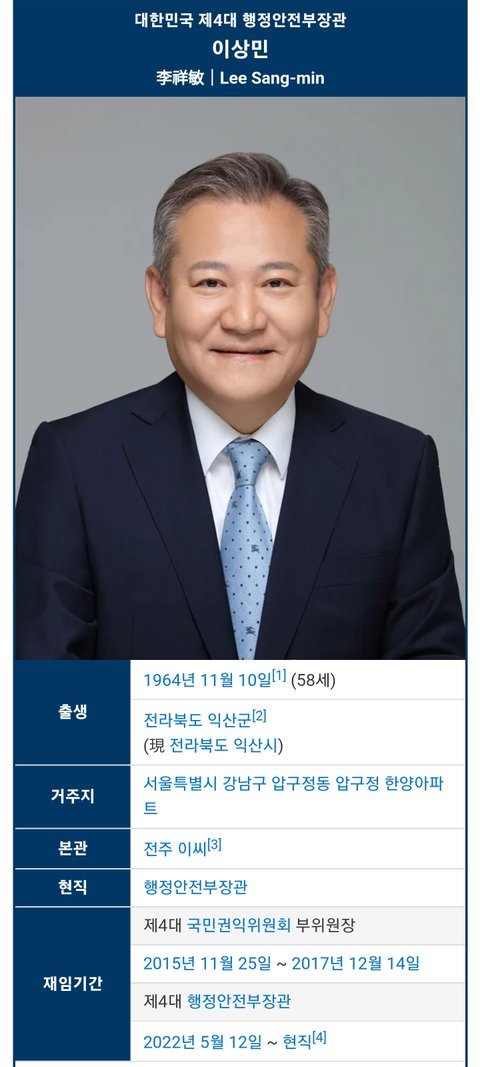 (사진3 설명) 이상민 행정안전부장관 <출처 : 네이버 나무위키>