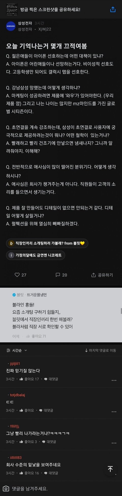 삼성 블라인드 ㄹㅈㄷ다 ㅋㅋㅋㅋㅋㅋㅋㅋㅋ