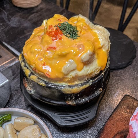 진짜 화산만큼 부풀어오른 계란찜에 체다치즈까지 올려주신 센스,,