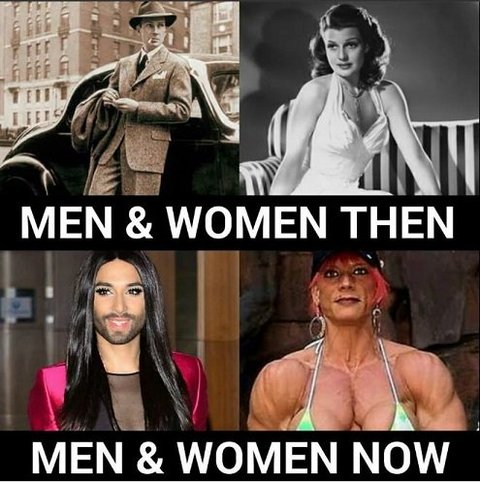 요즘 미국도 미쳐 돌아가서...남자가 남자답게 안 하고 게이 패션으로 설치는 경우.여자도 혜화역 대학로 예술극장 지나 갈 때 남자마냥 3cm 컷 한 애들 답 없더라.본인의 성별 고유매력을 못 살리는 불쌍한 애들.