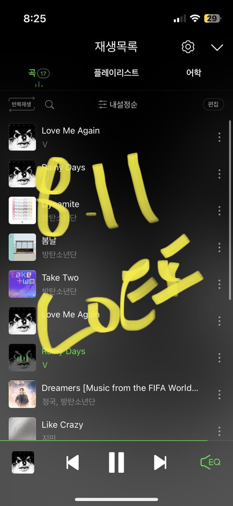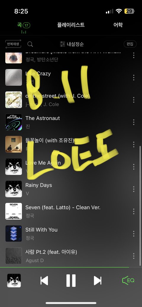 다른 사람들 스밍 인증 보면 럽미어게인 레이니데이즈 다음에 첫번째가 세븐이던데 난 왜 다이너마이트인거임??? 나 이상하게 돌리고 있는거야???