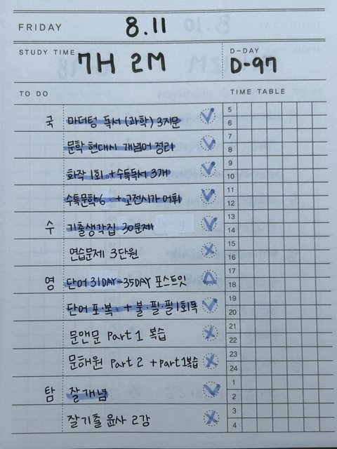 앉아서 10분도 집중 못하던 내가 그래도 조금씩 공부시간 늘려가는 게 신기함 내일은 오늘보다 좀 더 늘리고 싶은 기대감이 있음