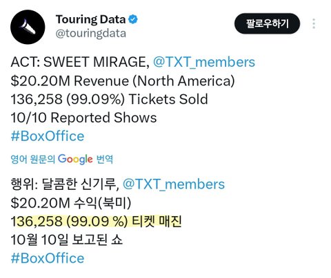 아니 투바투 룰라팔루자도 헤드라이너 매진에 떼창도 엄청 컸는데 타그룹에 비해서 너무 기사가 안 뜨는 거 같아서 아쉬움