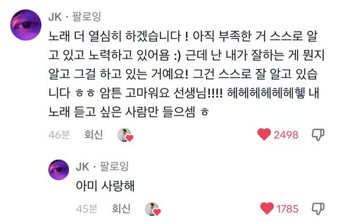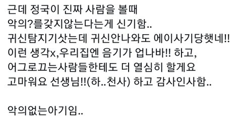 내용은 정국이 보컬칭찬하는 내용이던데 굳이 내용이나 제목을 저딴식으로 써서 어그로끄는거 ㄱ빡침ㅅㅂ.... 안그래도 본업에 있어서 완벽주의자에 졵나 엄격한 애인데ㅠㅠㅠ 전정국한테는 무조건 사랑칭찬만줬으면!!!!!!