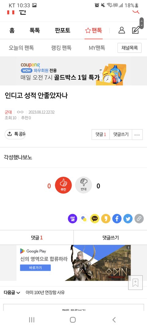 ❗조방, 댓글도 여기서 봐❗인디고 성적 안좋았잖아
