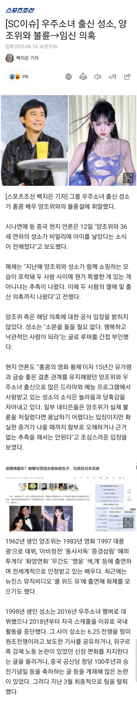 뭔... 아무런 증거도 없고 위상도 ㅈㄴ 높은 대배우 양조위가 미쳤다고 30살 넘게 젊은 여자랑 불륜을 했을거같지도 않은데... ㅋㅋ 그냥 말도 안되는 찌라시 아님?