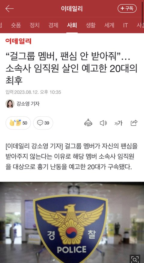에스파 윈터 관련 SM 직원 살인 예고자 근황