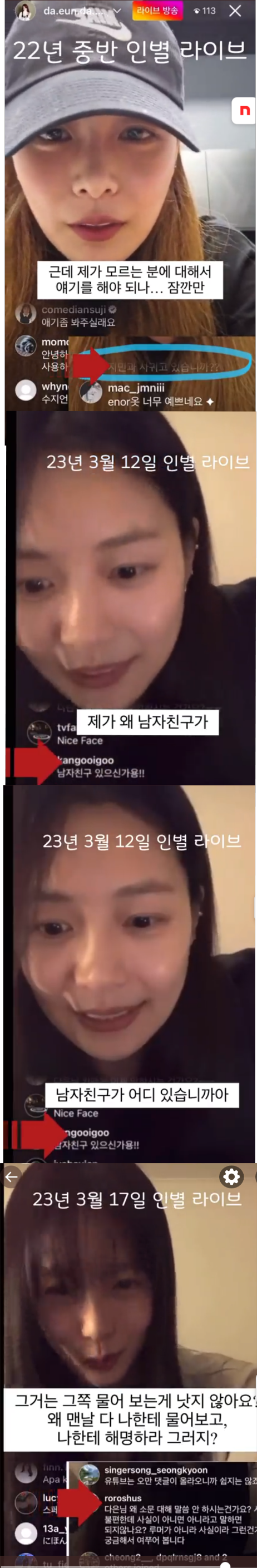 라방 몇 번 봤었는데 라이브켤때마다 댓글이나 질문이 거의 소문 진짜냐, 사귀는거 맞냐, 남친 있냐, 이런 어그로 질문밖에 없었는데 그럴때마다 모르는 분이다, 남친 없다 말했음
