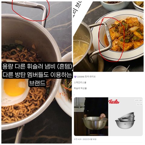 1. 접시: 다른 제품 > 송다은 인스스에 올라온 접시 가장자리에 얇은 선이 있음> 지민이 위버스에 올린 접시는 선이 없음