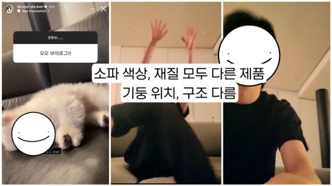 > 송다은 인스스에 올라온 소파는 어둡고 반짝이는 재질, 기둥은 소파의 오른쪽에 위치함 (화면의 왼쪽)
