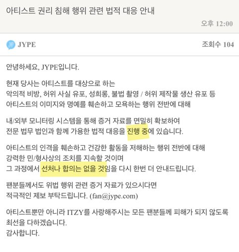 어떤 소속사든 고소공지는 대환영 악플러들 싹 잡아가라~
