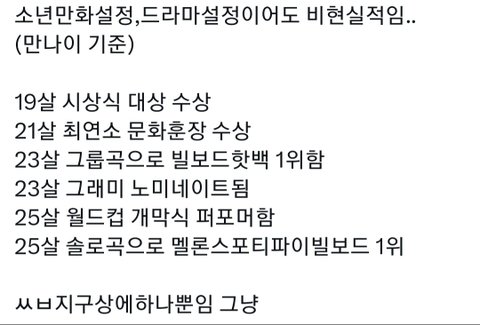 요즘 나이로 치면 2007년생이 단독 작사작곡 “거짓말”메가히트 시킨거고 이후 20년간 내는 곡마다 전부 히트곡 + 멤버 솔로곡 (날봐귀순, ...