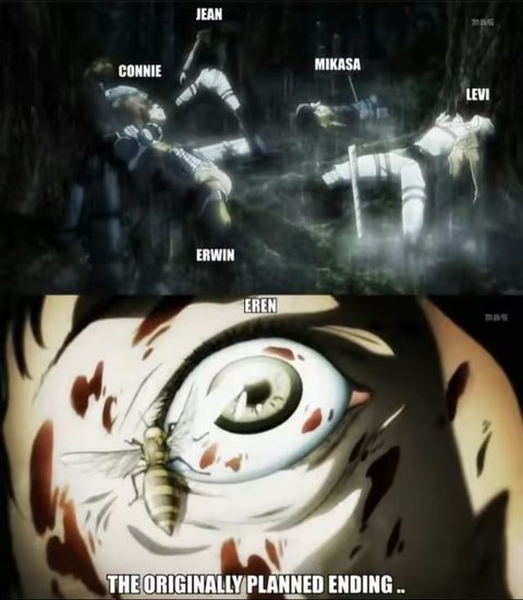 내가 진격거 정주행을 안한지 몇년 지나서 그런가 이런 장면 없지 않았어…? 사람들 말로는 진격거 애니 오리지널 엔딩이었던 것 이라는데…애니는 2기에 완결할 계획이었다는 소리가 있는데 진짜야?-?