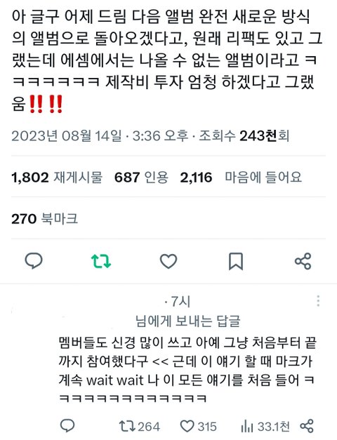 그럼 내년 완전 연초 컴백 기대해도 되겠다
