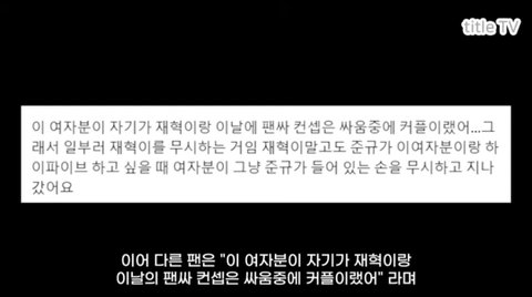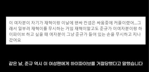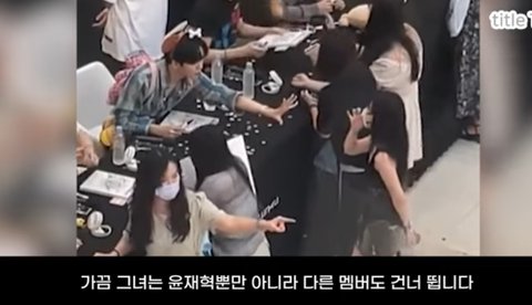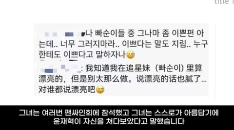 이여자가 팬싸 끝나고 하는말이 윤재혁이 자기한테 싸인해주려고 안달하는 모습,애걸복걸하는거 봤냐며 자랑스럽게 말했다고 함.현재 팬들 홈피 몰려가서 테러하는중.