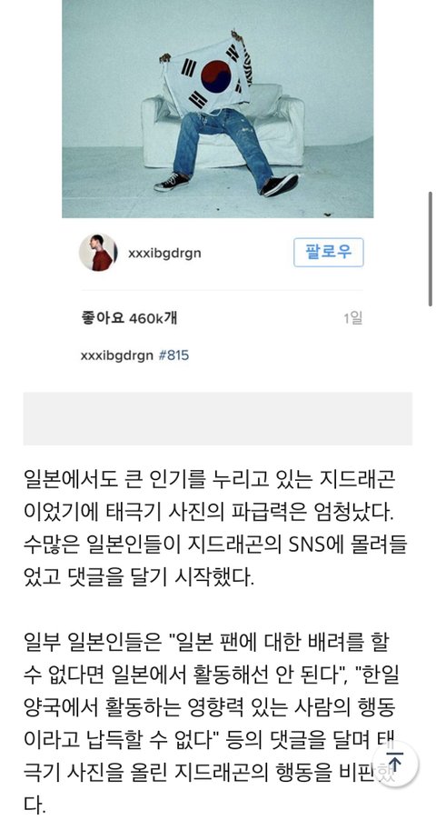 지디 광복절 게시물 올리는거
