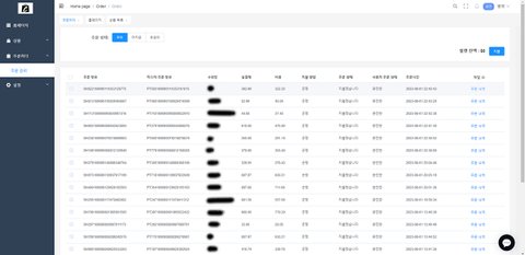 지금 보시는 목록들은 그동안 들어온 주문건들 중에 한 페이지 부분입니다.