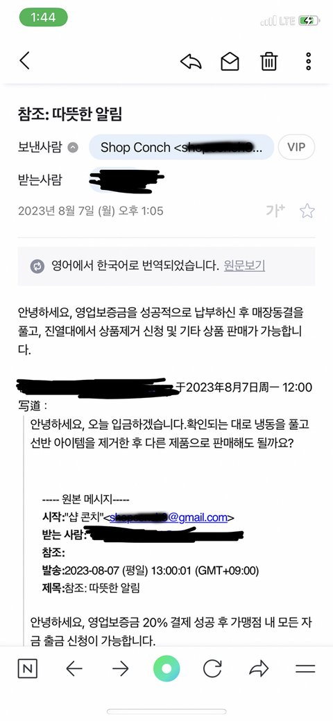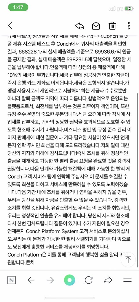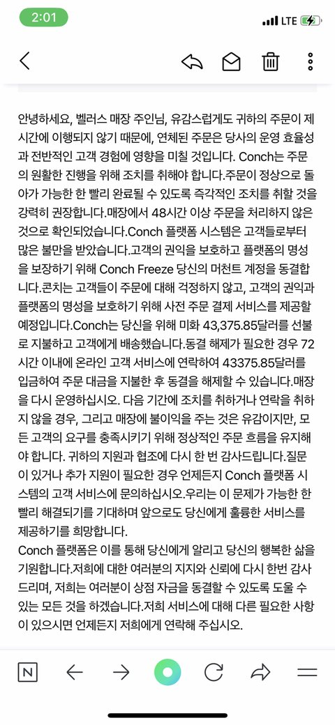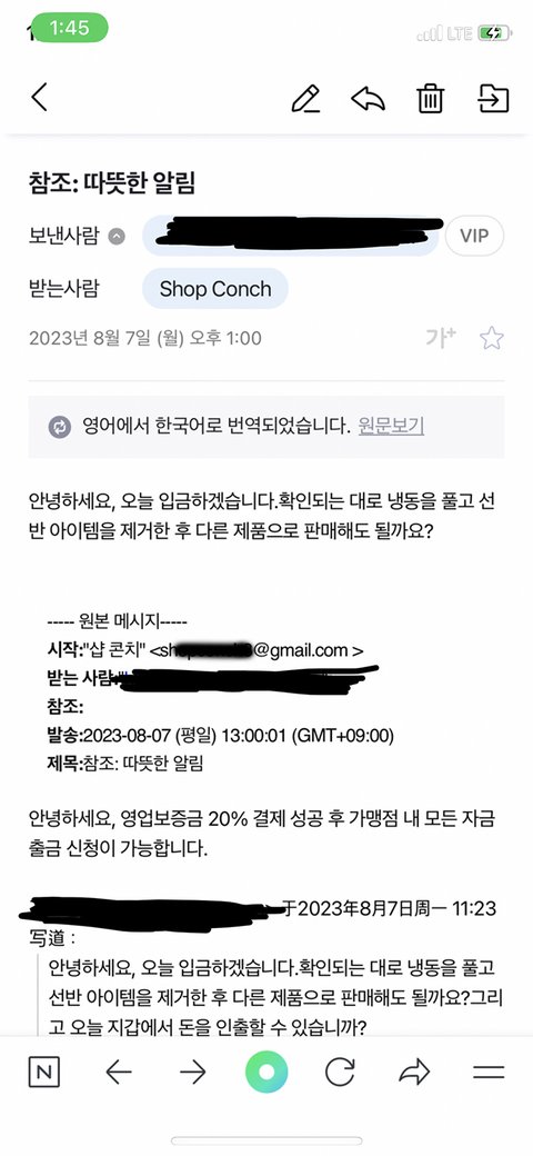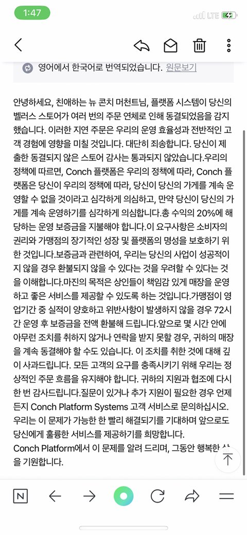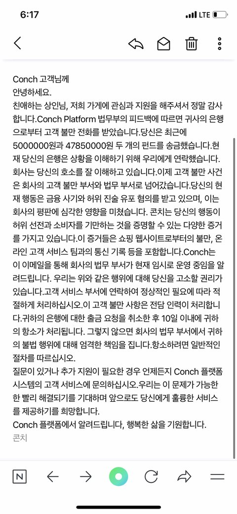 콘치에서는 그 후 이런 협박 메일까지 보내서 저를 너무 불안하게 만듭니다.