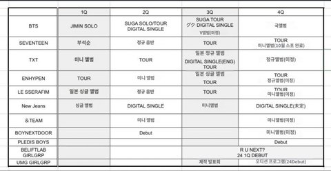 SM YG JYP 하이브 방탄 세븐틴 투바투 엔하이픈 르세라핌 뉴진스 엔팀 보이넥스트도어 플디보이즈 플레디스보이즈