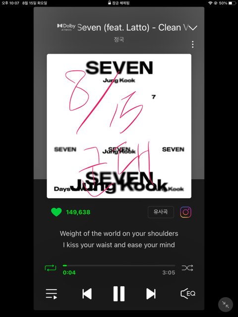세븐 9시에 탑백 1위네