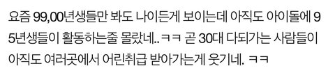 한국나이로 중반이라 어린 나이는 아니긴함